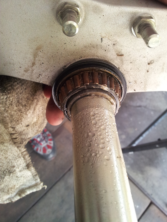 Das untere Lager sah komischerweise besser aus, obwohl sich ja dort das Wasser sammeln müsste. Das obere Lager haben wir ersetzt, das untere haben wir nur gereinigt, da wir uns nicht sicher waren ob wir bei der Demontage nicht die Dichtung verletzten. Ersatzdichtung hatten wir leider keine.